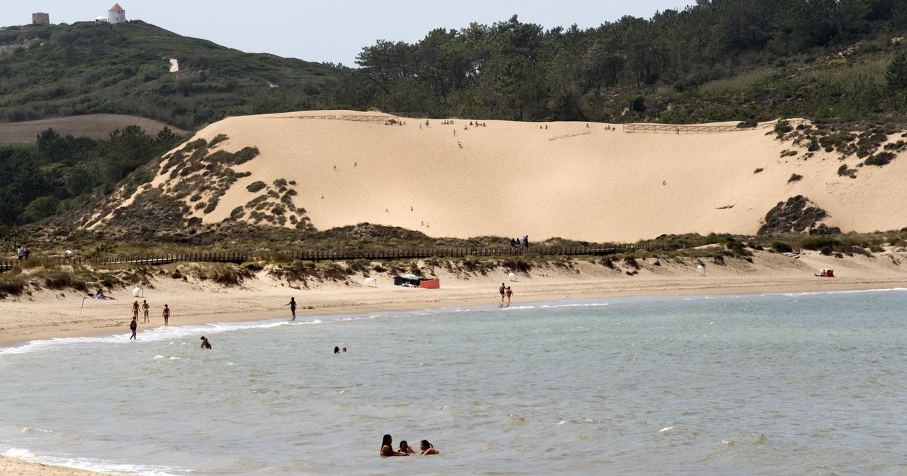 Até Peniche observam-se mais de 2 quilómetros de areia branca e fina, com um complexo de pequenas dunas.